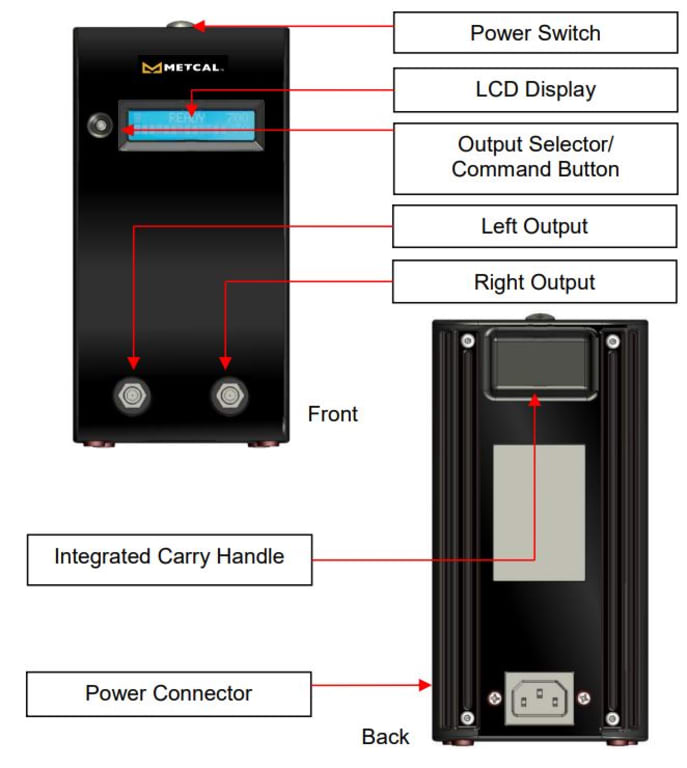 The system utilizes SmartHeat Technology, where each cartridge is equipped with a self-regulating heater which ‘senses’ its own temperature and closely maintains its preset idle temperature for the life of the heater-tip. The tip temperature is determined by the inherent metallurgical properties of the heater; no external adjustment or equipment is required. The MX-500 retains switchable dual port and 40W SmartHeat Power.