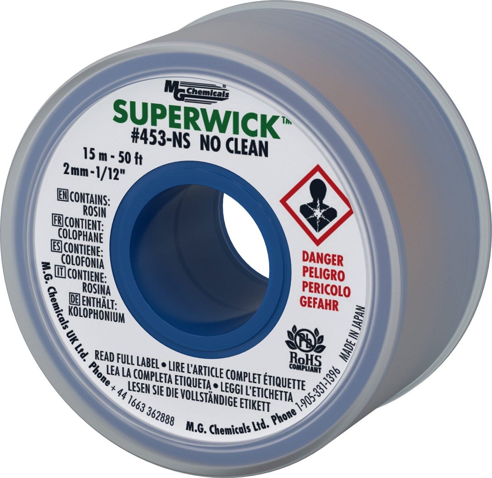 MG Chemicals 453-NS – No Clean Super Wick (Width = 1/12 inch, 2.0mm / Length = 50 ft, 15.0m)