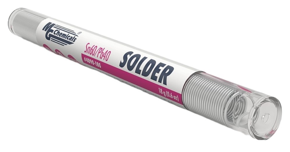 MG Chemicals Sn60/Pb40 RA Solder Wire is an electronic grade solder wire. It uses a classical tin-to-lead alloy ratio, which is complemented with a RA-like flux core. The solder wires meet J-STD-004B, ASTM B 32, and exceeds J-STD-006C specifications. It melts at a slightly higher temperature and over a wider range than the 63/37 solder. It results in robust and reliable joints that are highly resistant to whisker formation.