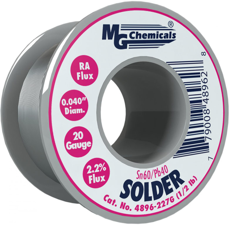 The 4890–4898 Sn60/Pb40 RA Solder Wire is electronics grade solder wire. The 60/40 rosin core solder uses a classic tin-to-lead alloy ratio complemented by a RA-like flux core. This solder wire meets J-STD-004B, ASTM B 32, and exceeds J-STD-006C specifications. It melts at slightly higher temperatures and over a wider temperature range than 63/37 solder. This results in robust and reliable joints that are highly resistant to whisker formation.