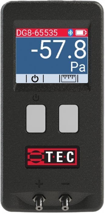 The DG-8 can be used with the TEC Gauge app (Android and iOS) to quickly monitor and record your pressure measurements. It can also be used with the TEC Exhaust Fan Flow Meter and both sizes of the TEC Pressure Pan.