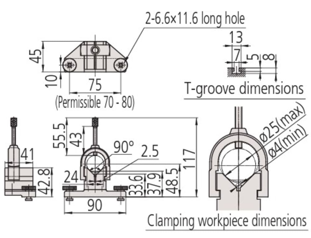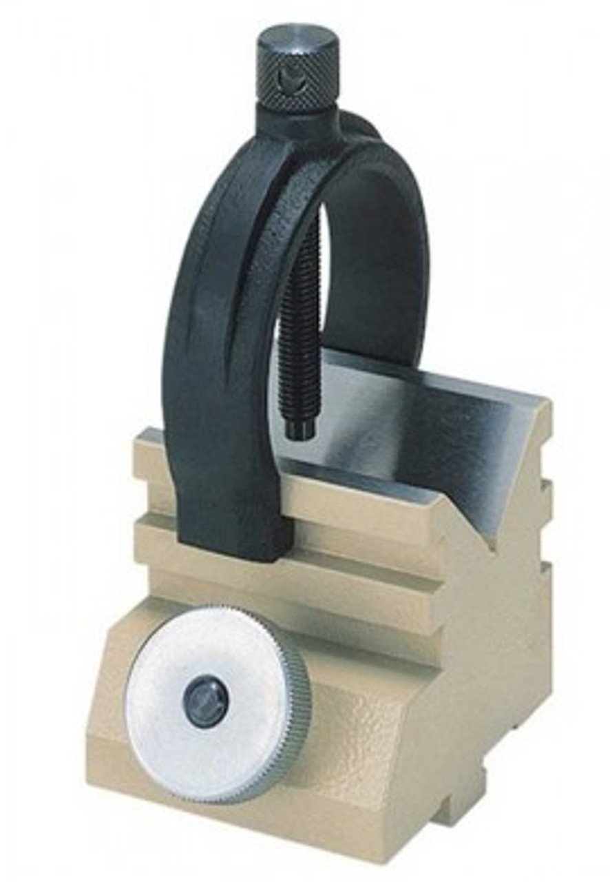 Mitutoyo 172-378 V-Block with Clamp for Rotary Table is used to mount a cylindrical-form workpiece.