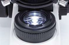 The BA310 microscope features a 3W LED light source implemented in a Full-Koehler setup. The importance of LEDs as safe and long-term illumination sources has increased especially in teaching environments as lifetime and reduced heat are superior to Halogen bulbs. The standard condenser with NA 1.25 and aperture diaphragm for visualization of non-stained samples is part of the basic equipment. It can be replaced by an ergonomic turret condenser with all necessary Phase rings plus Darkfield stop.