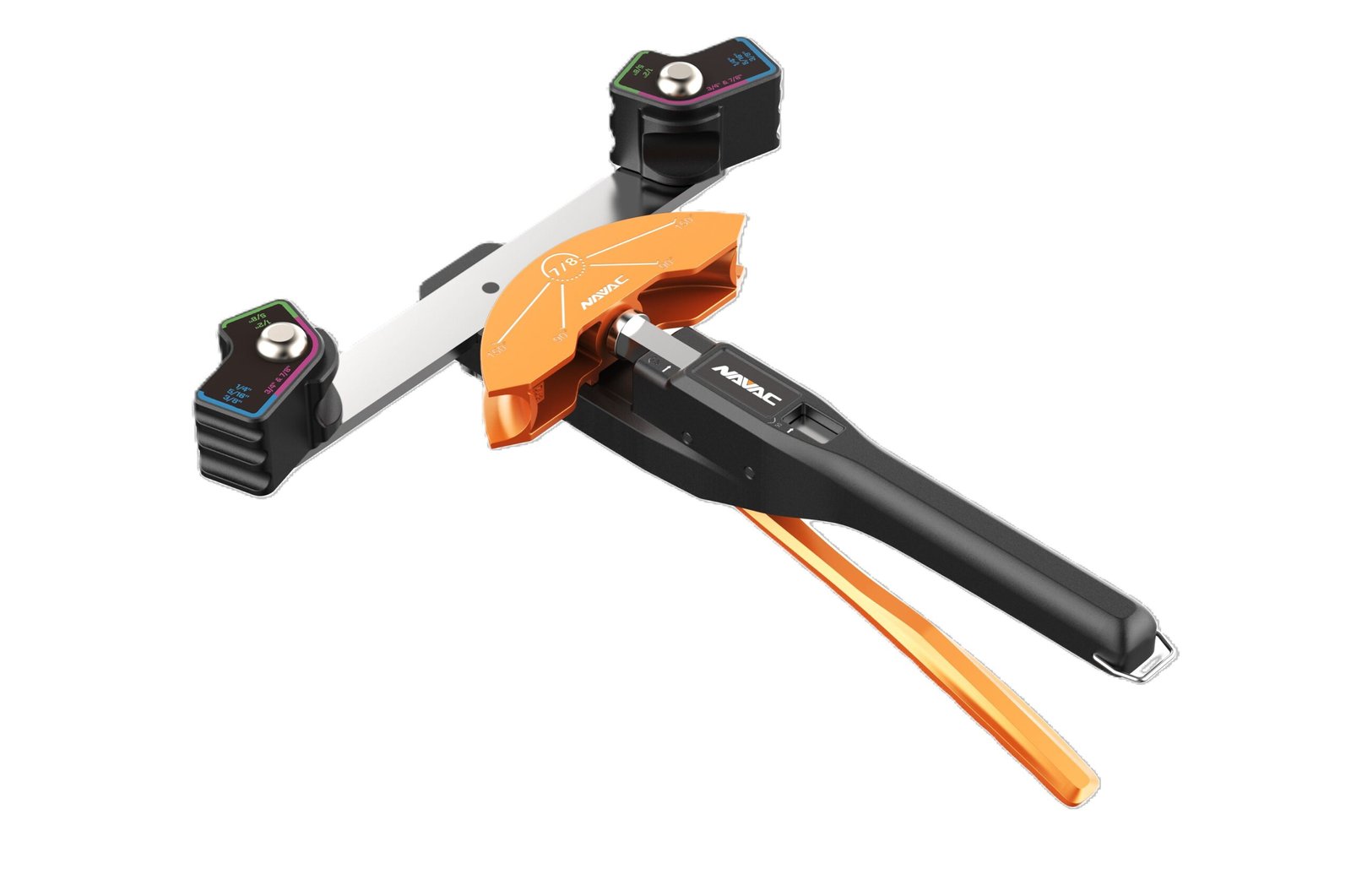 The NAVAC NTB7 Ratcheting Tube Bender features 7-in-1 tubing size selector, single crossbar for all sizes, quick connect mandrels, 90 degree bending angle marks. The NAVAC NTB7 has an ergonomic handle and is designed to be light and compact. Reverse bending structure is available (NTBRK sold separately).