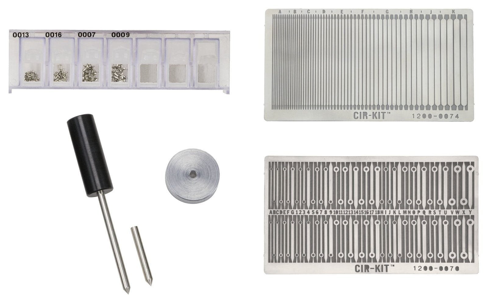 PACE Cir-Kit Circuitry Repair Kits are a simple, low cost solution to damaged, lifted or missing circuitry on pc boards, allowing fast repair and modification per IPC 7721. Non-ThermoBond Cir-Kits are available in 3 different Models (Basic, Advanced and Master versions) and include the necessary tools and accessories to install the included frames or eyelets. RoHS Compliant Frames are pre-tinned on both sides and available in a wide variety of land/circuitry sizes and shapes including pads, tracks, traces and runs. Cir-Kit Repair Kits provide a practical solution for restoring the operational reliability to damaged assemblies or the means for modifying circuitry as desired.