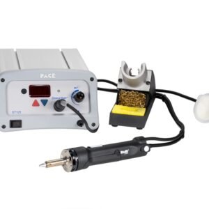 The ST125 has soldering, desoldering and hot air functionality and comes with the SX100 desoldering iron. It uses SenaTemp heating technology and is compatible with several SensaTemp handpieces. The system comes standard with PACE’s patented Hi-Flo Snap-Vac Pump technology to ensure quick, clean removal of solder from any through-hole joint or surface land.