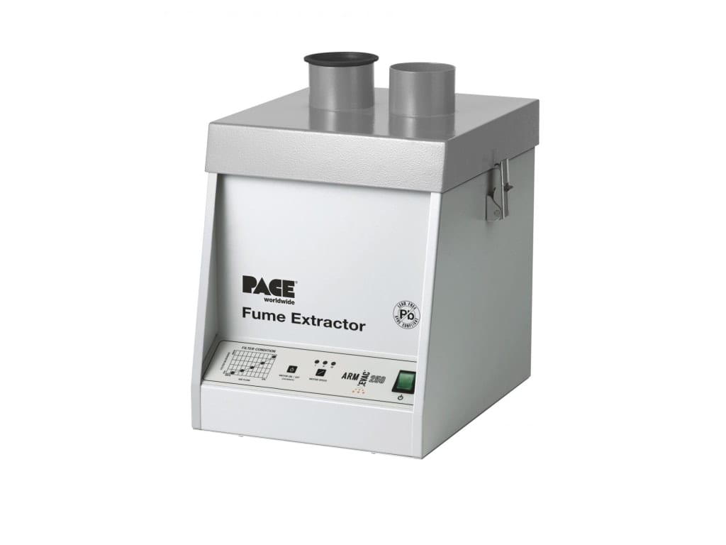 Pace offers several fume extractor models – the chart below provides a brief overview of airflow for each with both a general purpose filter and HEPA filter, as well as with 1 and 2 ports being utilized. While airflow on the Arm-Evac 200 and Arm-Evac 250 are the same, the Arm-Evac 250 is specifically designed for heavy duty applications requiring high capacity and continuous particle filter monitoring.
