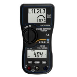 The rotating field indicator PCE-PI 10 is used to determine the direction of rotation of 3-phase voltage networks. Furthermore, the rotating field indicator can measure voltages up to 600V AC / DC. The rotating field direction is important for machines and plants. If the phases are not connected correctly, damage to connected motors and pumps can occur, for example.