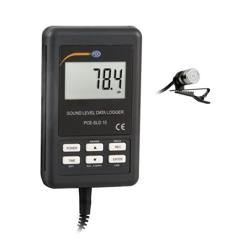 The sound level data logger PCE-SLD 10 is used for permanent monitoring of the sound level. In addition to storing the measured values, the sound level data logger is able to display the measured values on a display and output them as a 4 … 20-mA analog value. The sound level data logger has a wide measuring range of 30 … 130 dB. Frequency weighting is done in A or C depending on the selected measurement mode. Alternatively, the sound level data logger can measure the sound level in fast or slow mode.