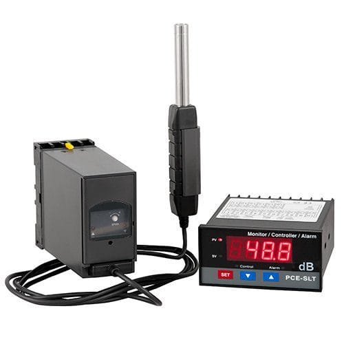 PCE-SLT is a class II (type 2) sound level, sound pressure level (SPL), a decibel (dB) or noise meter with audible or visual alarm output capability. PCE-SLT is used for long-term, continuous monitoring of occupational noise exposure limits in industrial environments such as foundries, factories, and manufacturing production floors. The measuring device consists of a wall-mountable acoustic sensor on a 1.5 m / 4.92′ long cable and a transmitter.