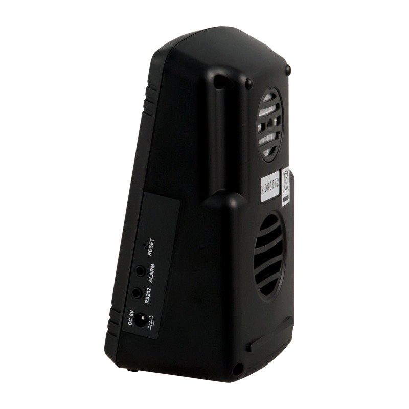 The format is XLS, so the measured values can be read directly into Excel, without having to be incorporated into the new software. The measured values are displayed on the large, illuminated display. The thermometer is operated by batteries or a 9 V power supply unit. As a special feature, these air quality meters are equipped with an alarm function. This offers the possibility to inform the user about an exceeding temperature, air humidity, or dust load. In addition to the measured values, the air quality meter also informs about the current time.