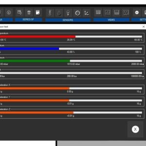 • Measures temperature, humidity, air pressure, and light (lux), sampling rate up to 1 Hz