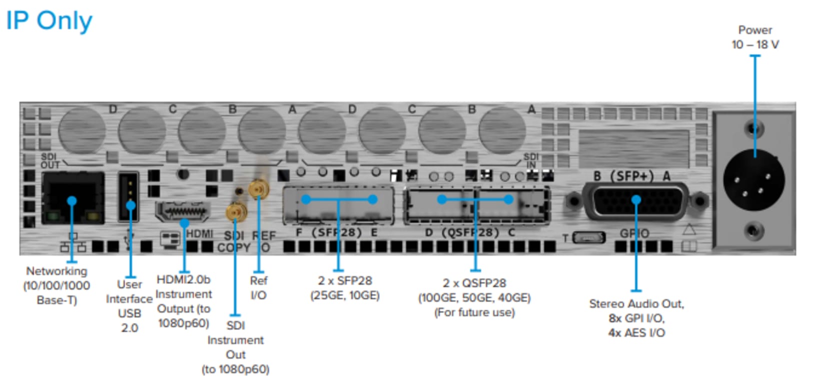 For real-time IP workflows, the QxP supports simultaneous Generation and Analysis of SD*/HD/3G/UHD/EUHD 2110 payloads on generic SFP28/25 GbE interfaces, with ST 2022-7 Seamless IP Protection Switching (SIPS) and independent PTP followers on both media ports for fully redundant media network operation – all with AMWA NMOS IS-04 and IS-05. *Future software release