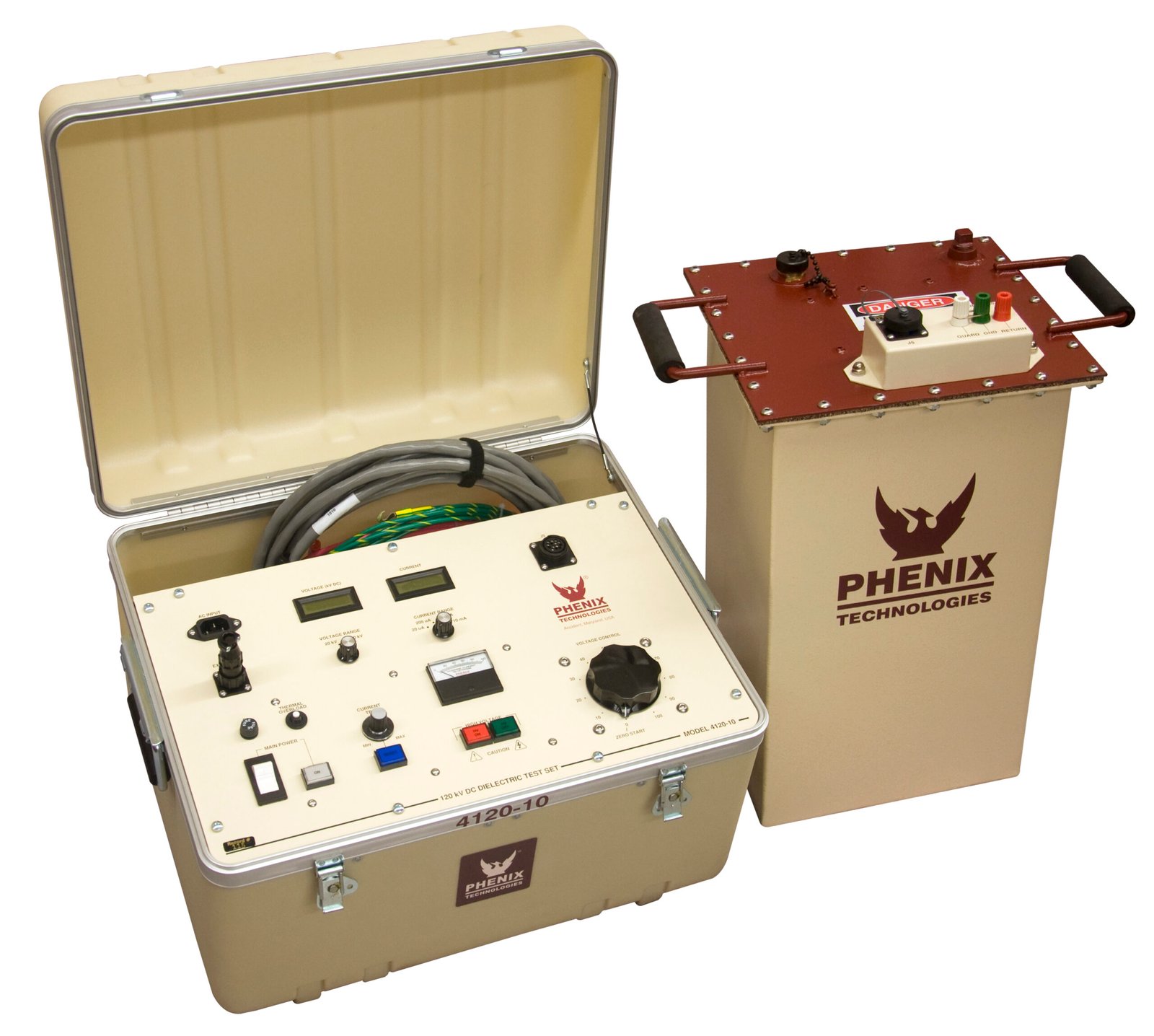 Phenix Technologies offers a line of portable 40-200 kV DC Hipots with many advanced features including high accuracy digital meters, analog charging current meter, adjustable over current, and high output current ratings.