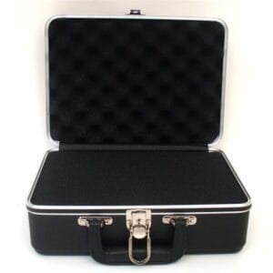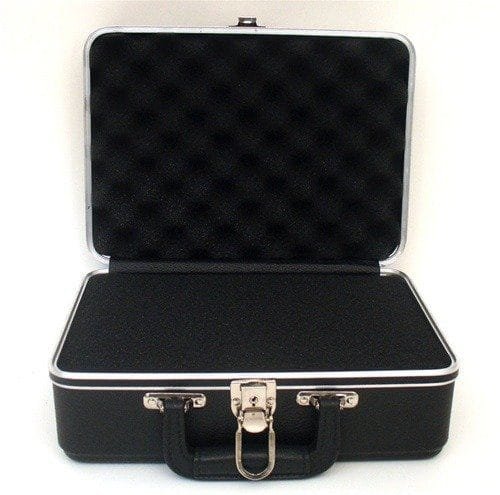Light-duty, black, scuff-resistant molded ABS thermoplastic forms the tough shell of these cases. Extruded aluminum rim, drawbolt key lock, and strong molded handle. The case comes with our standard pick-n-pluck cubed foam.