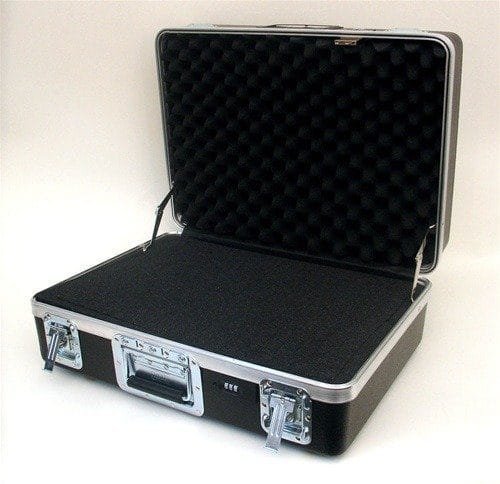 Heavy-Duty Polyethylene ATA Cases with Recessed Hardware. The exterior shell is tough impact-resistant HMW polyethylene. Heavy-Duty aluminum rim and gasket, built-in TSA-accepted combination lock, cardholder, full-length piano hinge, and spring-loaded handle. This case comes with our standard pick-n-pluck cubed foam.