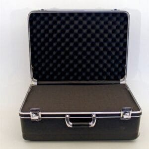 The exterior shell is tough impact-resistant HMW polyethylene. Heavy duty aluminum rim with black trim and gasket, cast chrome key locks, full-length piano hinge, and deluxe golf grip handle. This case comes with our standard pick-n-pluck cubed foam.