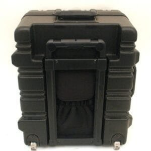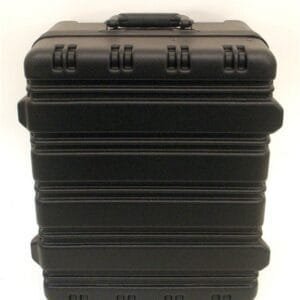 High-tech rugged ribbed case in a large size. Black valance with all black hardware, built-in TSA accepted combination lock, 2 recessed military-style latches, cardholder, exterior mesh accessory pouch, full-length piano hinge, stitched vinyl steel-core handle, ball-bearing wheels, and telescoping handle. 1 top handle and 1 side handle were added for easier handling. New compartments have been added to the bottom of the case to increase storage capabilities. Comes standard with Platt’s SG and SH super-sized pallets. Accepts all super-sized pallets.