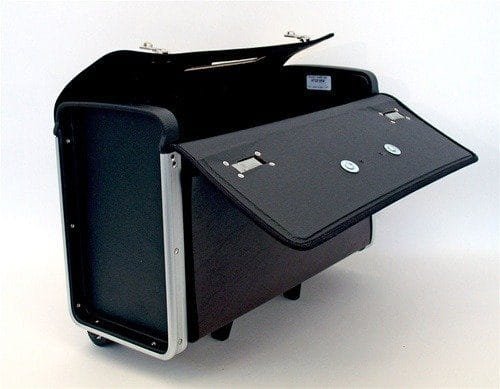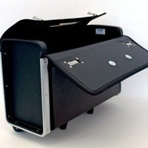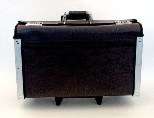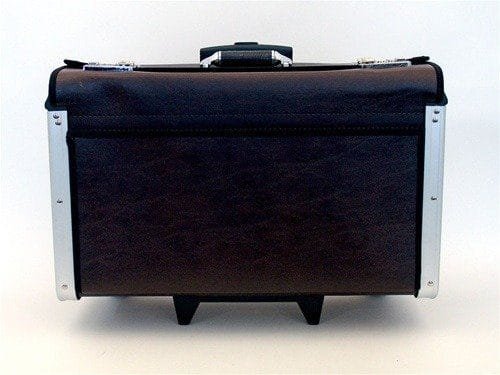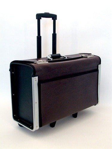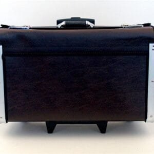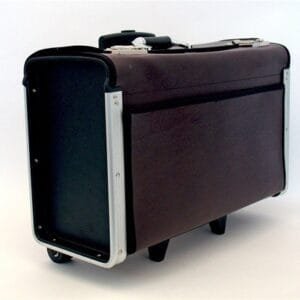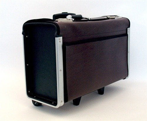 Durable construction features supported backed vinyl top, bottom, and sides with thermoplastic end shells and clear anodized aluminum frames making it the best and longest-lasting catalog case available. Concealed metal rods running length of the case interconnected and riveted to end shells form a lightweight yet flexible frame. With large bottom glides for maximum wearability, outside pocket for convenience, chrome plated combo locks, and a unique golf grip handle. The case also comes with wheels and a telescoping handle for easy traveling.