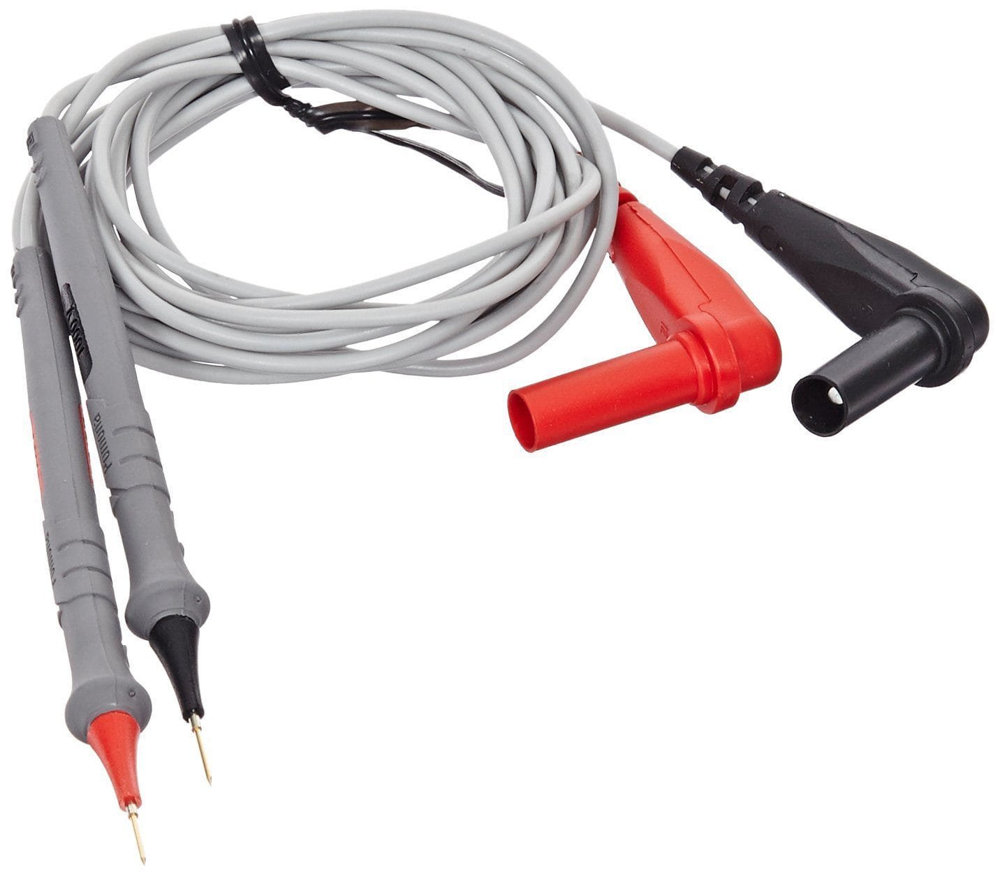 Miniature probe is the perfect size for probing tiny, high-density circuits. Gold plated pogo pin tip keeps constant pressure on test point for consistent readings. Replaceable probe tips available. Safety design complies with all the latest standards. Flexible Silicone insulated wire resists burning. Right angle DMM plug fits most digital multimeters.