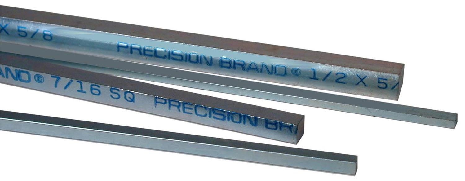 High quality steel material. Zinc plated finish. Size is clearly marked on each piece. Precision Brand® Keystock is used to provide driving torque between shafts and pulleys, gears, sprockets, etc. Used for new machinery, general maintenance, and shop repairs. It is a necessity in all applications where rotating power devices are used. Most tolerances on dimensions are oversized to assure tight fits in keyways for positive, zero backlash power transmission.