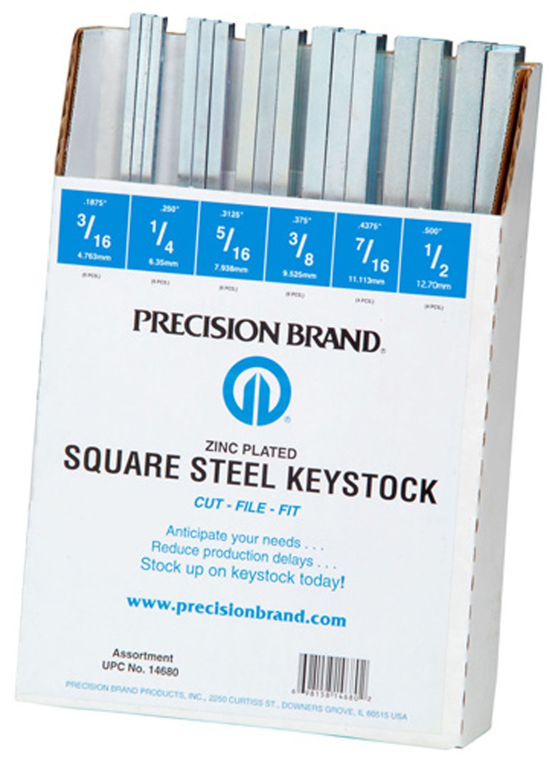 Precision Brand 14680 – 32 Piece Square Keystock Asst,Zinc Plated, 12” Length