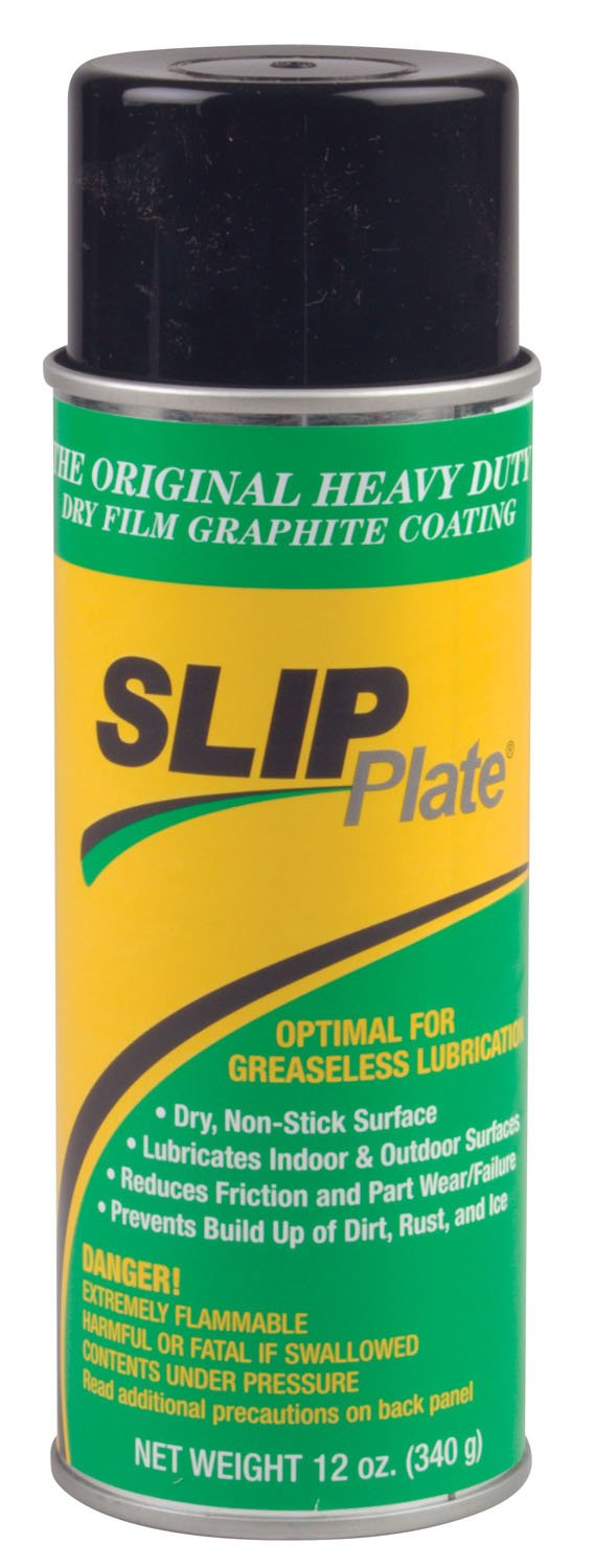 SLIP Plate Aerosol is an environmentally safe alternative to petroleum films and greases. It reduces sliding friction and buildup and molecularly bonds to metal surfaces. Original, dry film lubricant that goes on like paint. Produces a slick barrier between metal surfaces. Help reduce corrosion and prolong equipment life. Lubricates in extreme environments and is stable from -75 to + 450 degrees F. Naturally hydrophobic – repelling rain, snow, and mud. It is available in pack of 6.