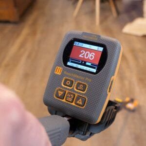 The ReachMaster Pro lets the user easily zero-in on problem areas — optimizing home inspections or floor damage repairs. The device features adjustable sensitivity, allowing for customized surveying to the material being inspected. A pinless moisture meter, the ReachMaster Pro can take readings from a surface to a nominal depth of 5” (12.5 cm), creating a moisture profile for a volume of material.