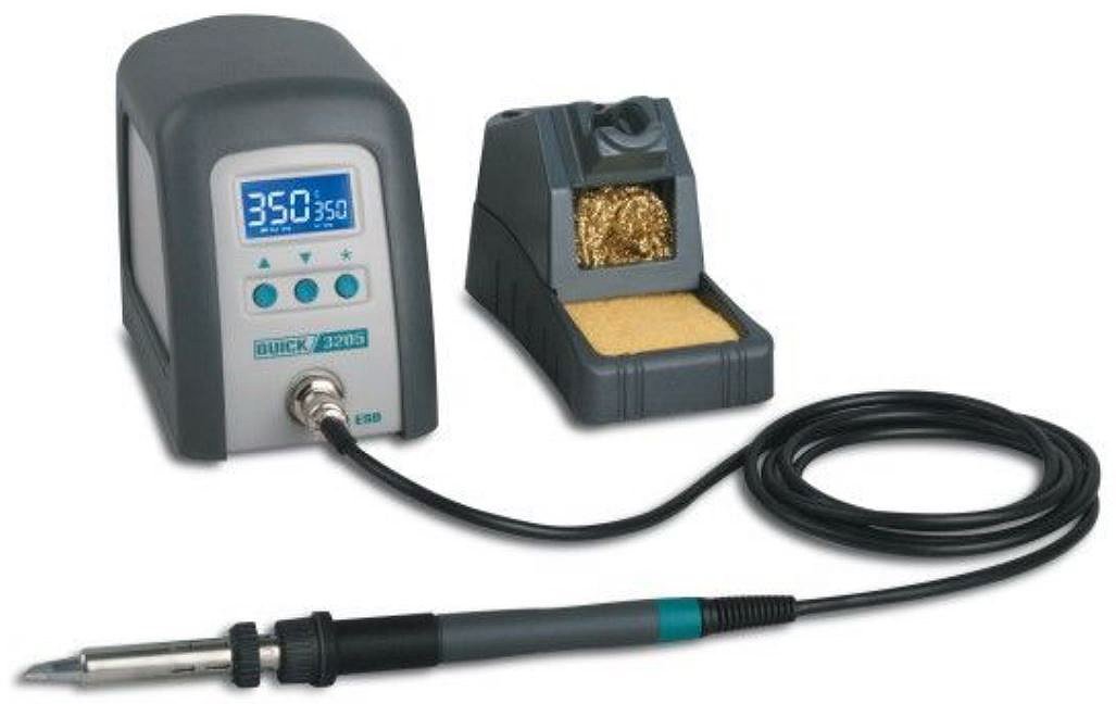 The Quick 3205 is a 150 watt digital soldering station. The 3205 offers rapid heating and thermal recovery, as well as precise and stable temperature control.