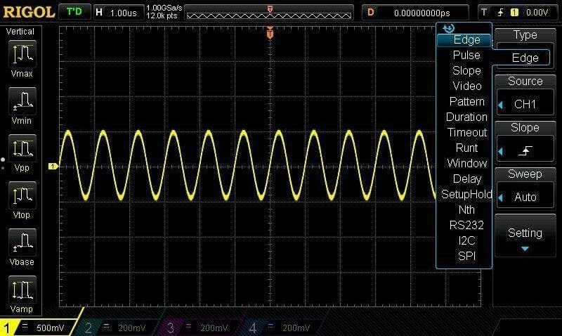 - Advanced Triggering Option, RS232/UART, I2C, SPI, Runt, Windows, Nth Edge, Delay, Time Out