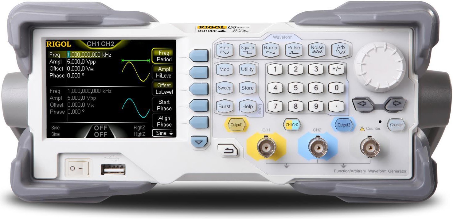 DG1000Z series function/arbitrary waveform generator is a multi-functional generator that combines many functions in one, including Function Generator, Arbitrary Waveform Generator, Noise Generator, Pulse Generator, Harmonics Generator, Analog/Digital Modulator and Counter. As a multi-functional, high performance and portable generator, it will be a new selection in education, R&D, production, test and etc.