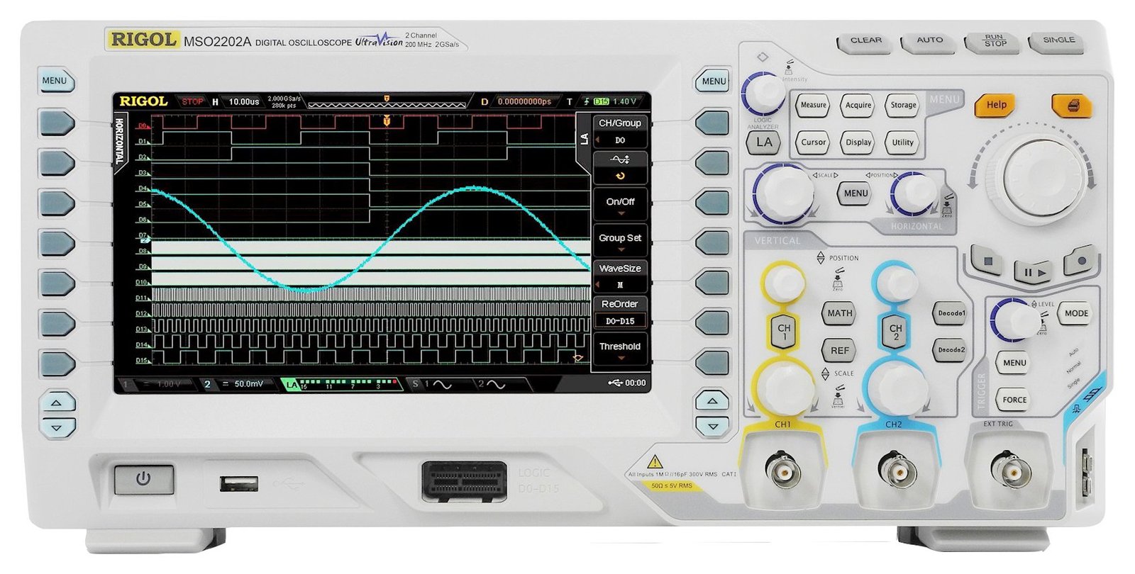 Rigol MSO2202A – 200 MHz, 2 Channel Mixed Signal Oscilloscope