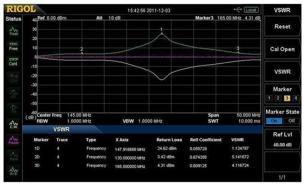VSWR-DSA800 option (if used together with the VB1020 and DSA800-TG options) provides measurement functions of S11-related specifications (such as the return loss, reflection coefficient and VSWR).