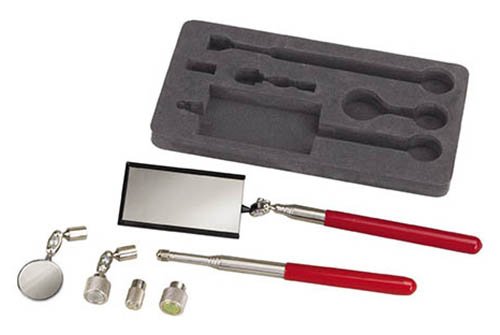 Handles telescope from 6-1/2″ to 25″. Swivel heads allow access to tight areas. Large, rectangular swivel mirror is 2″ x 3-1/2″, and is attached to one telescoping handle; small mirror is 1-1/4″ in diameter, and is interchangeable with magnets on the other handle. Magnets can lift up to 8 lbs.