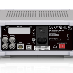 Four BNC ports on the rear panel can be assigned to various sources/sinks. The analog output allows users to choose either limits (PASS/FAIL) or measurands U, I or P as a source.