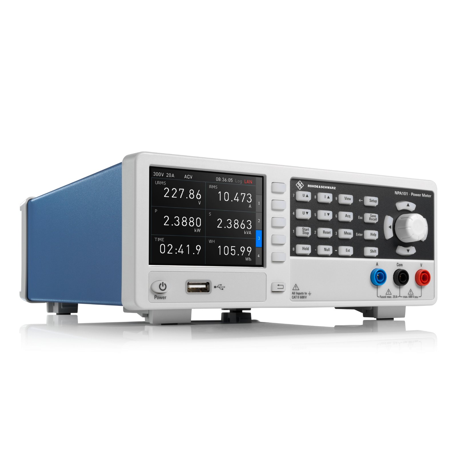 The R&S NPA101 power meter offers basic measurements of voltage, current, power, and total harmonic distortion (THD). The 5 V measurement range provides a previously unattainable level of resolution for power and energy measurements.