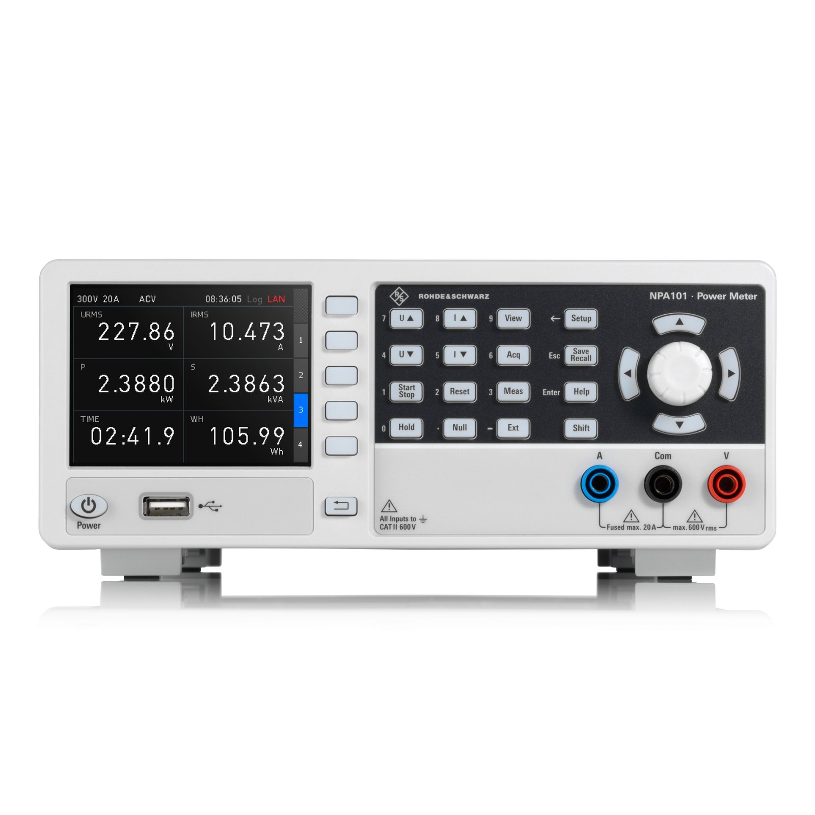 Power Meter (DC to 100 kHz, 600 V, 20 A, 50 uW to 12 kW, Logging, USB/LAN)