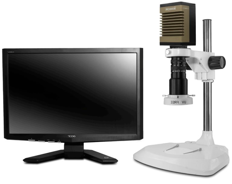 Scienscope MAC-PK1-4KSC-E2D-AF – MACRO Video Zoom Optics On Post Stand With Diffused Quadrant Compact LED Ring Light