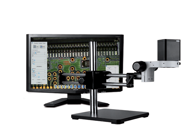 Features1080p HDMI/USB All-One camera with integrated optics (50x Max) and integrated diffused LED ring light and mounting adapter. SD or USB card capture. Includes 23 inch HD LCD monitor and capture software. Dual arm ball bearing boom stand.
