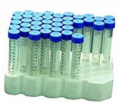 Graduations on clear tubes are printed in bold easy-to-read black ink and are accurate to ± 2%. Large white marking area provides excellent contrast for identification. All tubes are manufactured from high quality polypropylene and have smooth, flat surface polyethylene (HDPE) caps. Maximum RCF is 12,000g. Temperature range of -80°C to 120°C. 15mL clear tubes are available in plastic and paperboard recyclable racks or bulk packaged in zip-closure bags. Sterile (gamma irradiated).
