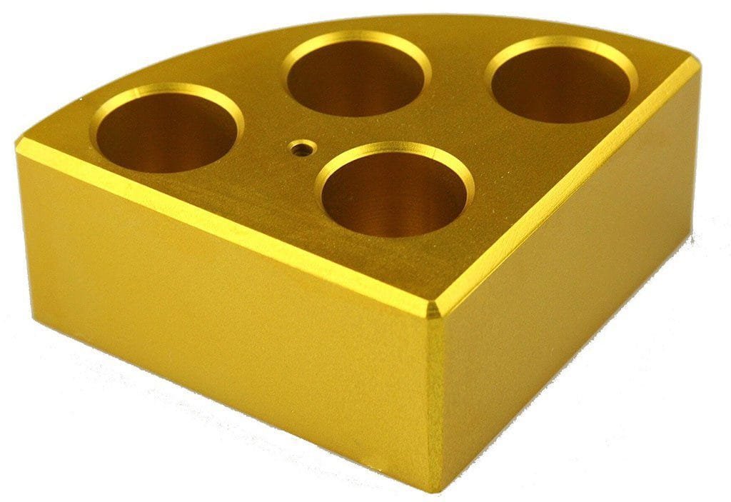 Scilogex 18900049 Gold quarter reaction block, 4 holes 16ml reaction vessel 21.6mm dia x 31.7mm depth.