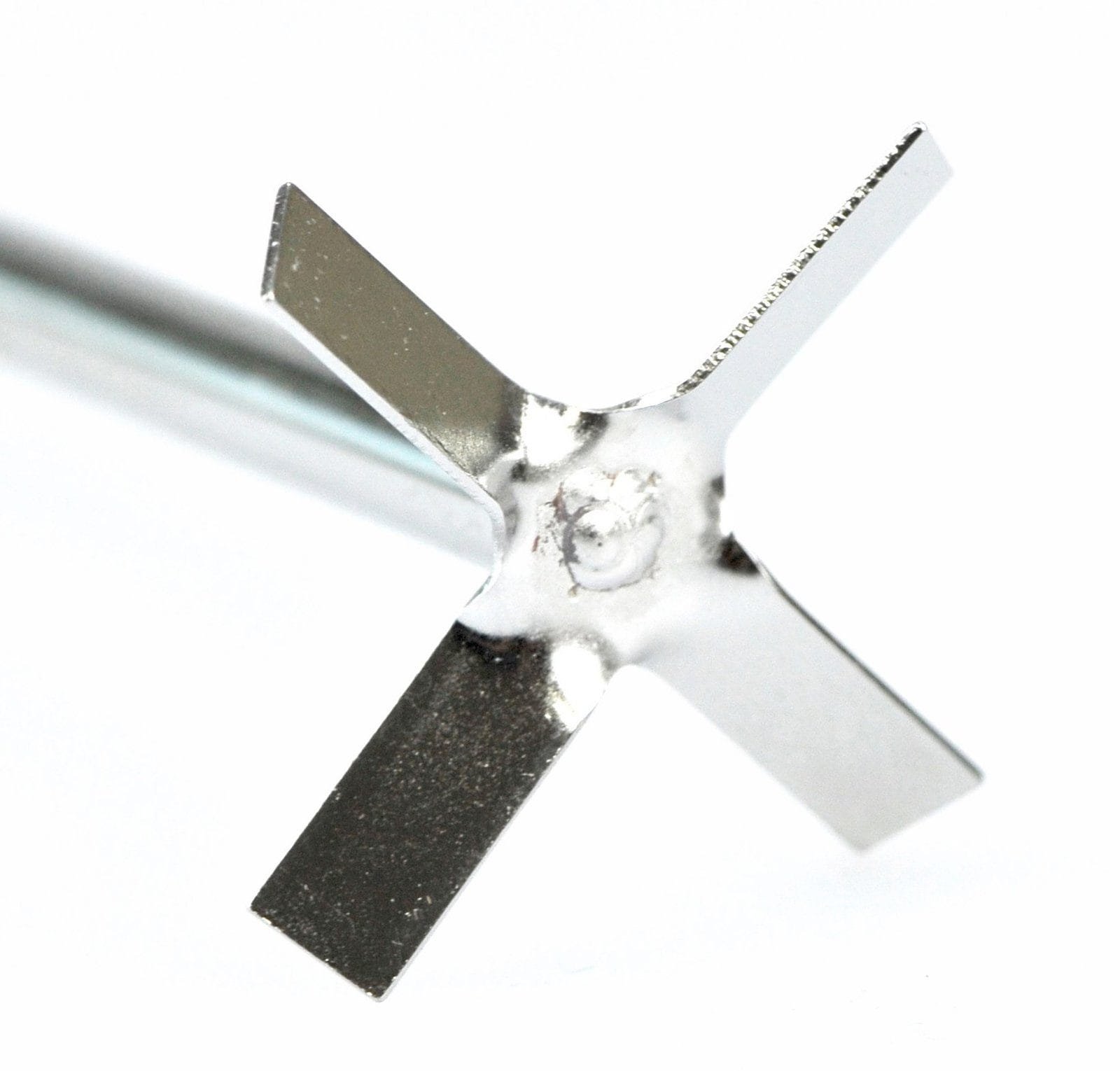Cross stirrer, 316L stainless steel. Shaft 400mm long x 8mm diameter. Impeller width 50mm.