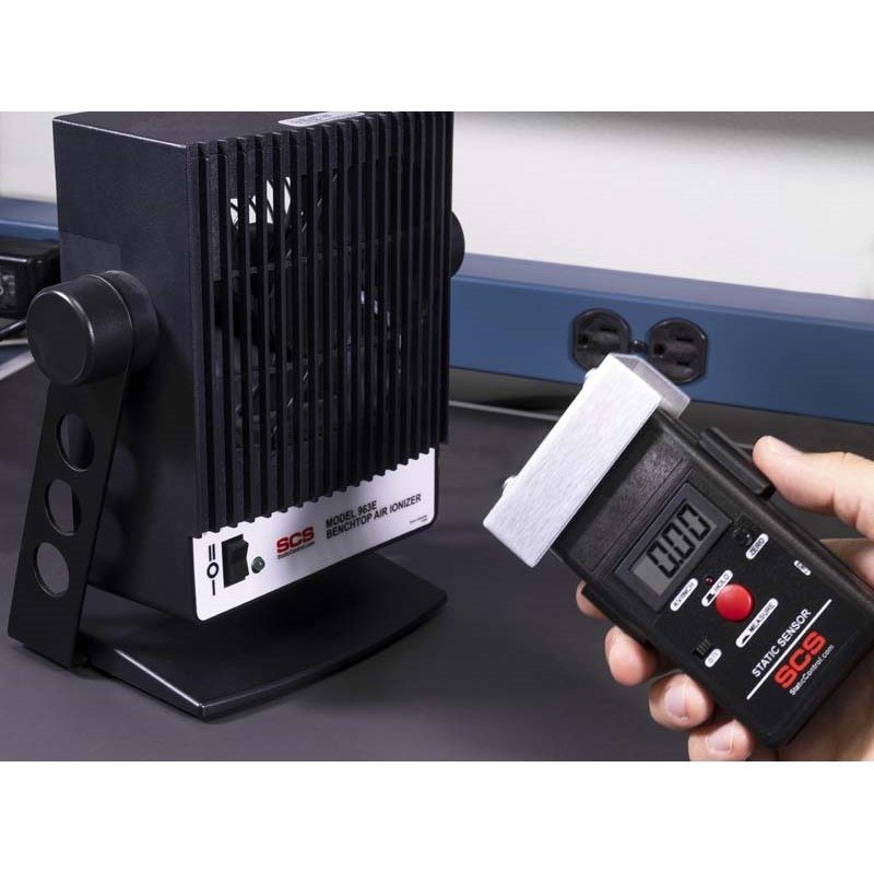 The SCS 770717 Air Ionizer Test Kit includes and utilizes the 770716 Static Sensor to measure the offset voltage (balance) and charge decay of ionization equipment. The Air Ionizer Test Kit also includes a charger used to place a +/- 1000V charge on the conductive plate, making it possible to also measure the discharge times of air ionization equipment per ANSI/ ESD SP3.3 Periodic Verification of Air Ionizers.