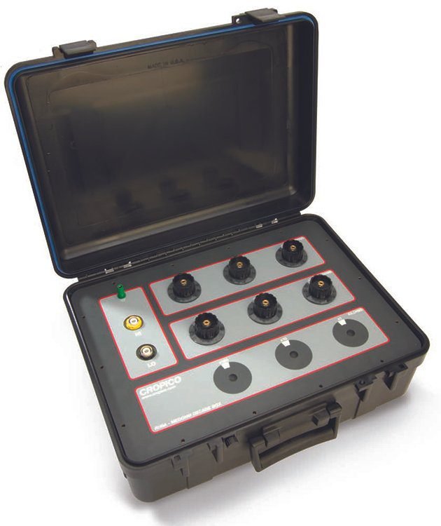 Designed using the Cropico high quality SP1 switch combined with specially selected resistors, this range of high ohm resistance decades is ideal for the calibration of insulation test sets having a voltage rating up to 5kV. Housed in a rugged carrying case and available in either 3, 6, or 9 decades the RH9A series covers the range 1 kilo ohm to 1 tera ohm and is equally at home in the laboratory workshop or field application. A single decade unit is also available with 10 switched values from 1 kilo ohm to 1 tera ohm. Supplied complete with high voltage test leads 1 metre in length and calibration certificate.