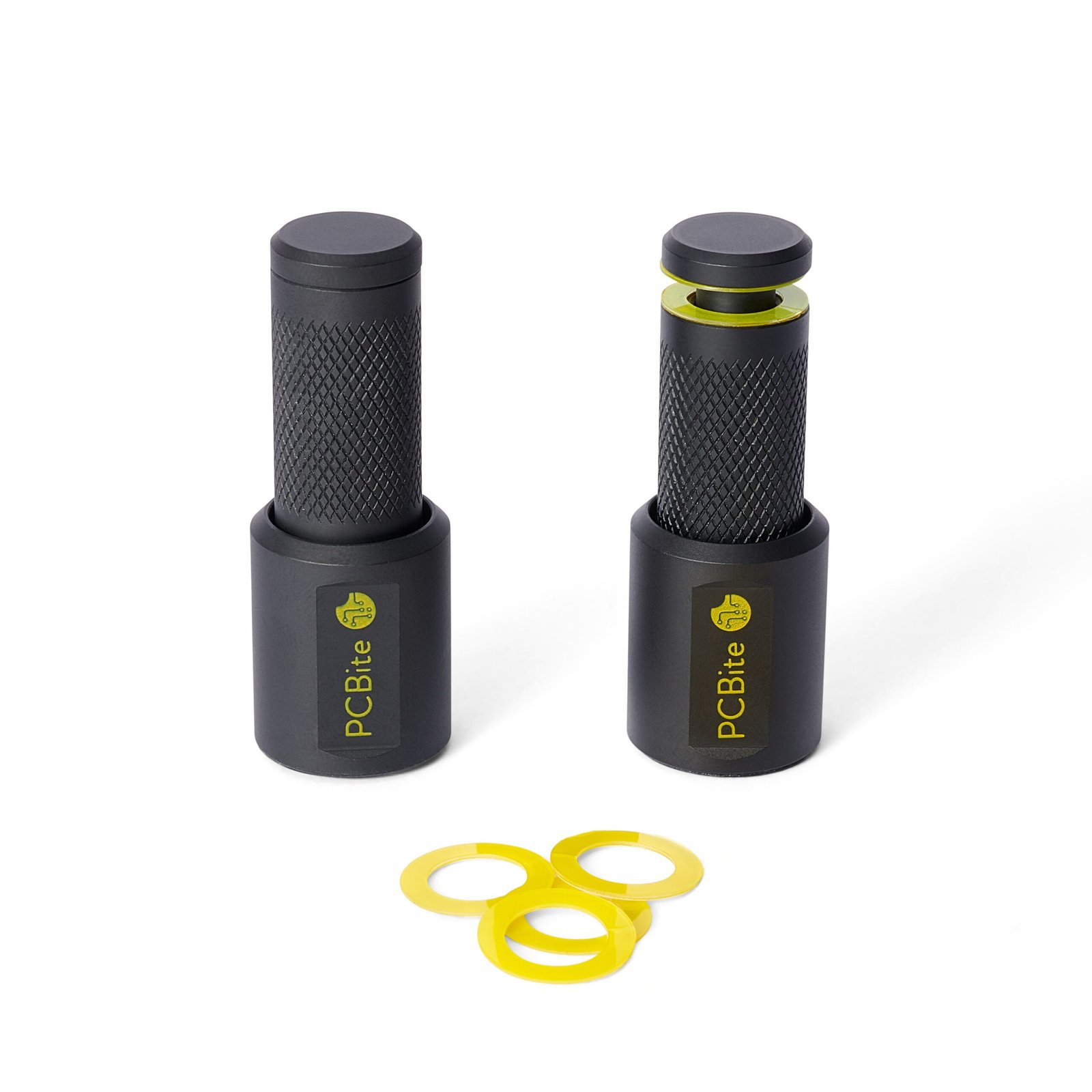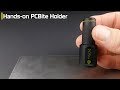 PCBite holds your circuit board during soldering, inspection, and testing. At the bottom of each holder is a strong magnet perfectly balanced in strength. A low friction bottom cap protects the magnet and makes the PCBite holder easy to slide. The “jaw” can open wide, and a spring ensures a strong locking force.