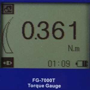 The FG-7000T Series digital torque gauges provide testing flexibility with their external torque sensor input. Torque sensors with standard chuck adapter are immediately recognized when connected to the display base and are available for your specific testing needs in 1 N-m (9 in-lb) 5 N-m (44 in-lb), and 10 N-m (88 in-lb) capacities. The multiple-language FG-7000T’s provide menu programming for easy selection and set-up of the instrument to your desired requirements. Four selectable modes of operation include Track mode for live readings, Peak mode for displaying the maximum reading, First Peak where only the initial peak is recorded once a decrease is sensed and Preset which initiates user-programmed tolerance alarms for go/no go testing. The display has two selectable operations, a numerical view with a directional bar graph or a graphical view with a directional bar graph. In a graphical view when alarm tolerances are set, the process is plotted in relation to the upper and lower limit graph lines. Combined with the go/no go icons, a simple pass/fail determination is recognized. These high-tech instruments can data log a reading at the push of a button for simple data acquisition or be set to continuous data storage. Data can be viewed on the screen, sent to the optional printer, or loaded to be analyzed and graphed on the free software program. The 1,000-point memory with definable groups allows for multiple tests to be recorded and easily separated upon loading. In addition, the comparator output can be set up for the integration of the instrument into a quality system for repetitive testing such as on a production line. The FG-7000T’s robust housings are designed to fit perfectly in the operator’s hand for portable testing. The large back-lit, 180° auto-reversible display, CW/CCW directional bar graph, combined with the dual labeled keypad allows for usage of the gauge in various positions while still being able to easily view and operate. These various features make the FG-7000T the ideal torque instrument for various applications such as closing or opening analysis of containers, valves, and door hardware, failure or destructive torque testing, or almost any torque testing requirement involving incoming quality inspection, finished goods testing to R&D.