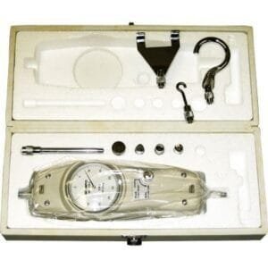 Incredibly durable and user-friendly, the economical MF mechanical force gauges are excellent for push/pull force testing in manufacturing, material testing, maintenance, and inspection applications. The peak force mode features an easy push-button reset; this is especially helpful for doing repetitive testing in an assembly line or in quality control. The large dial indicator allows viewing of force changes as they occur. This large dial reduces the chance for parallax errors when taking readings. The MF was ergonomically designed for handheld use, but may also be used with the optional handle-great for loads over 15 pounds (6.8 kg). Due to its mechanical design, response time is immediate. Calibration is achieved by a set of precisely matched springs that are overload protected to 165 pounds (75 kg)! MF gauges feature a die-cast aluminum housing that mounts easily to all NIDEC-SHIMPO INSTRUMENTS test stands for even greater control of repetitive testing. All standard Series MF gauges include a protective carrying case plus attachment adapters. A complete kit is available that includes adapters, padded ERGO accessories, a handle, a large rugged case, and NIST traceable certificate. This kit is perfect for the professional Physical Therapist or Ergonomist that performs Isokinetic testing or job task analysis.