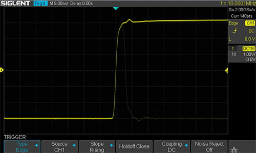 The SDS2000X-E series employs a new generation of SPO technology. With its excellent signal fidelity, background noise is lower than similar products in the industry. It has a minimum vertical input range of 500 uV/div, an innovative digital trigger system with high sensitivity and low jitter, and a waveform capture rate of 400,000 frames/sec (sequence mode). It also employs a 256-level intensity grading display function and a color temperature display mode not found in other models in this class.