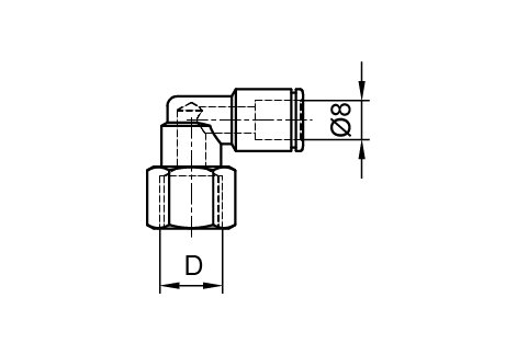 Rotary elbow G 1/4 inch, female thread, for hose Diameter 8mm