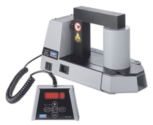 The SKF TIH 030m induction heater is designed to heat bearings that are mounted with an interference it onto a shaft. The heat causes the bearing to expand, which eliminates the need to use force during installation. A 90 °C (162 °F) temperature difference between the bearing and shaft is generally sufficient to enable installation. At an ambient temperature of 20 °C (68 °F), the bearing must therefore be heated to 110 °C (230 °F).